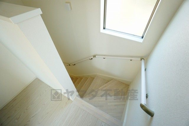 同仕様写真。小さなお子様やご高齢の方でも安心できる、手すり付き階段。段差も低めで設定されており、安全性にも優れています。
