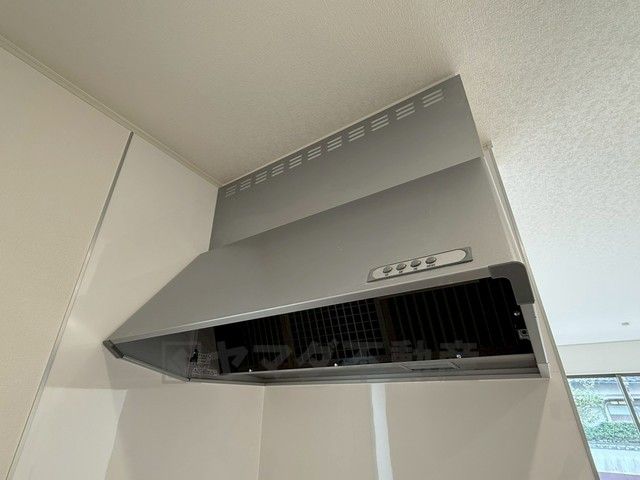 風量が弱・強と切替え可能なレンジフードが調理中の煙をしっかり吸い込みます。手元を照らすライト付きです。