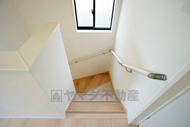 同仕様写真。小さなお子様やご高齢の方でも安心できる、手すり付き階段。段差も低めで設定されており、安全性にも優れています。