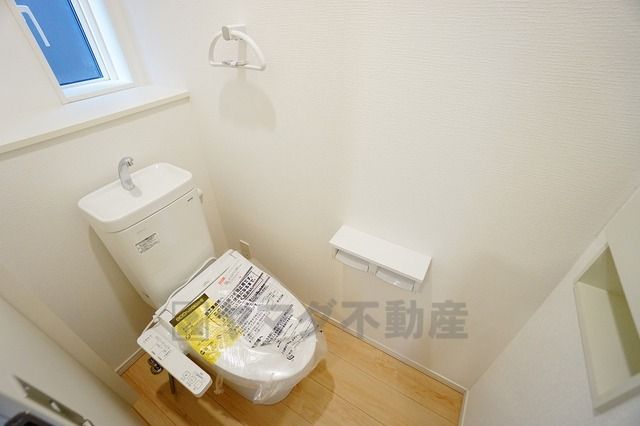 温水洗浄機付トイレです。節水機能もあるので、安心して使えますね。もちろん、1階2階の2ヶ所にトイレがあるので、忙しい朝にもゆとりができますね。