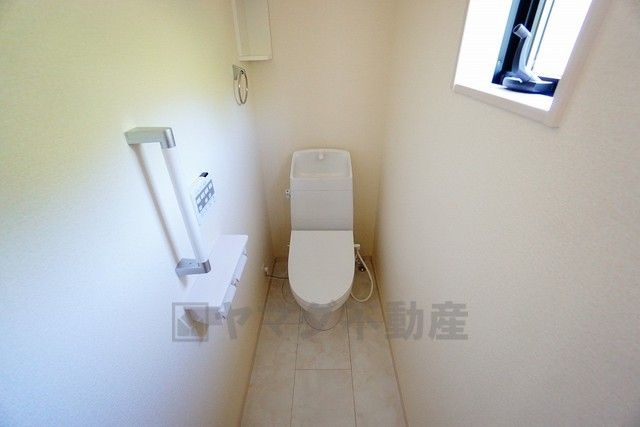 同仕様写真。温水洗浄機付トイレです。節水機能もあるので、安心して使えますね。もちろん、1階2階の2ヶ所にトイレがあるので、忙しい朝にもゆとりができますね。