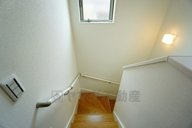 同仕様写真。小さなお子様やご高齢の方でも安心できる、手すり付き階段。段差も低めで設定されており、安全性にも優れています。